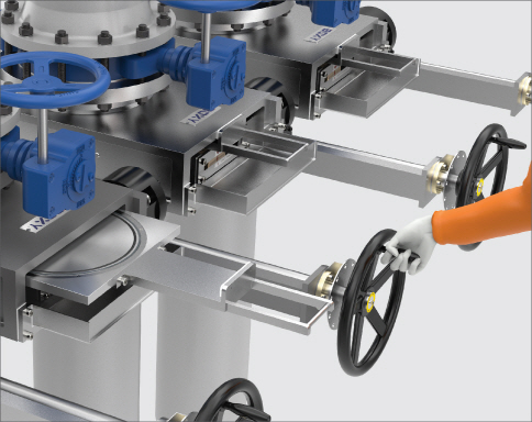 重量パイプのブラインド・ブラインド解除作業を簡単かつ安全に行うことができます。ハンドホイールで作動します。